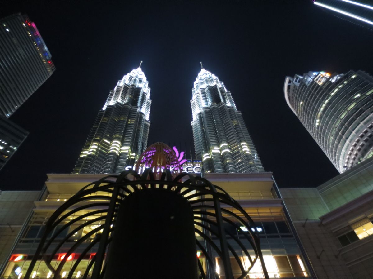 前日に歩いて行き下から見上げました。また夜には噴水ショーも見ました。KLCCが広いので集合場所までの行き方を確認をお勧めします。入り口が多いのでかなり迷いました。
