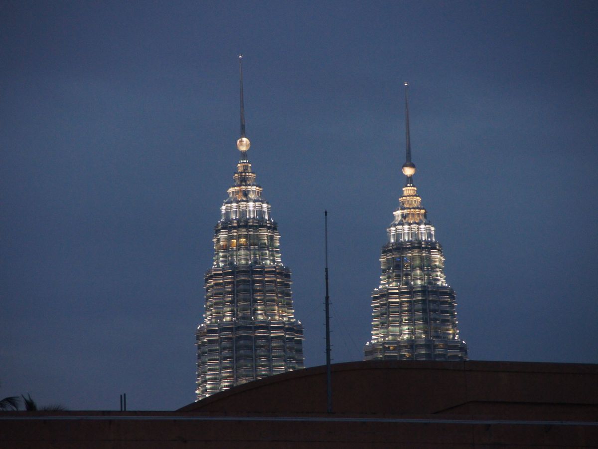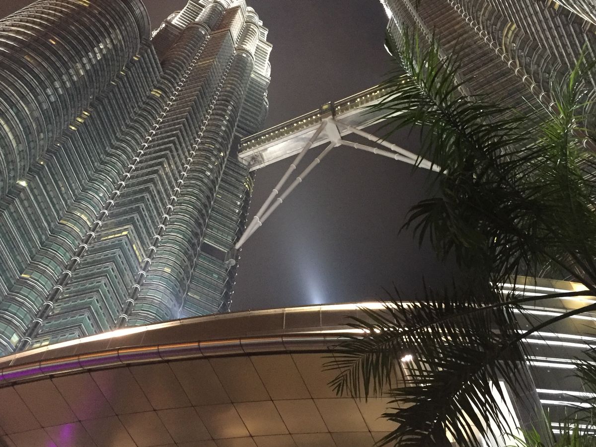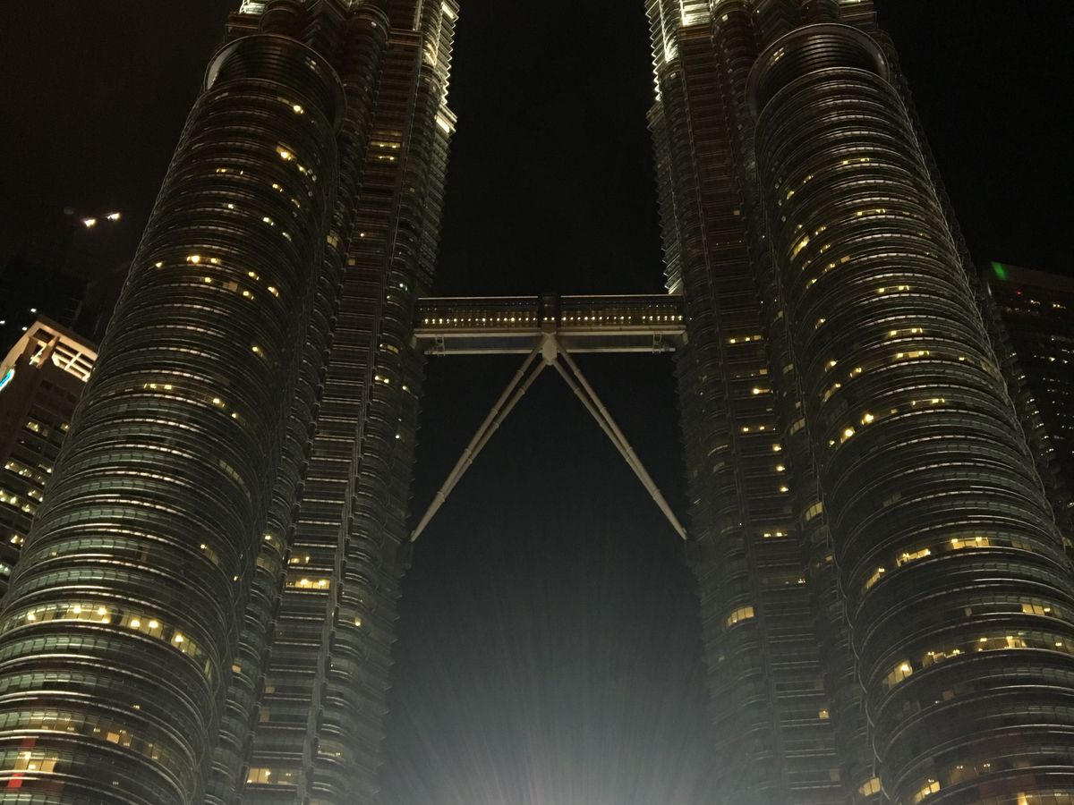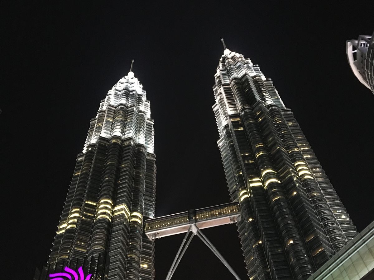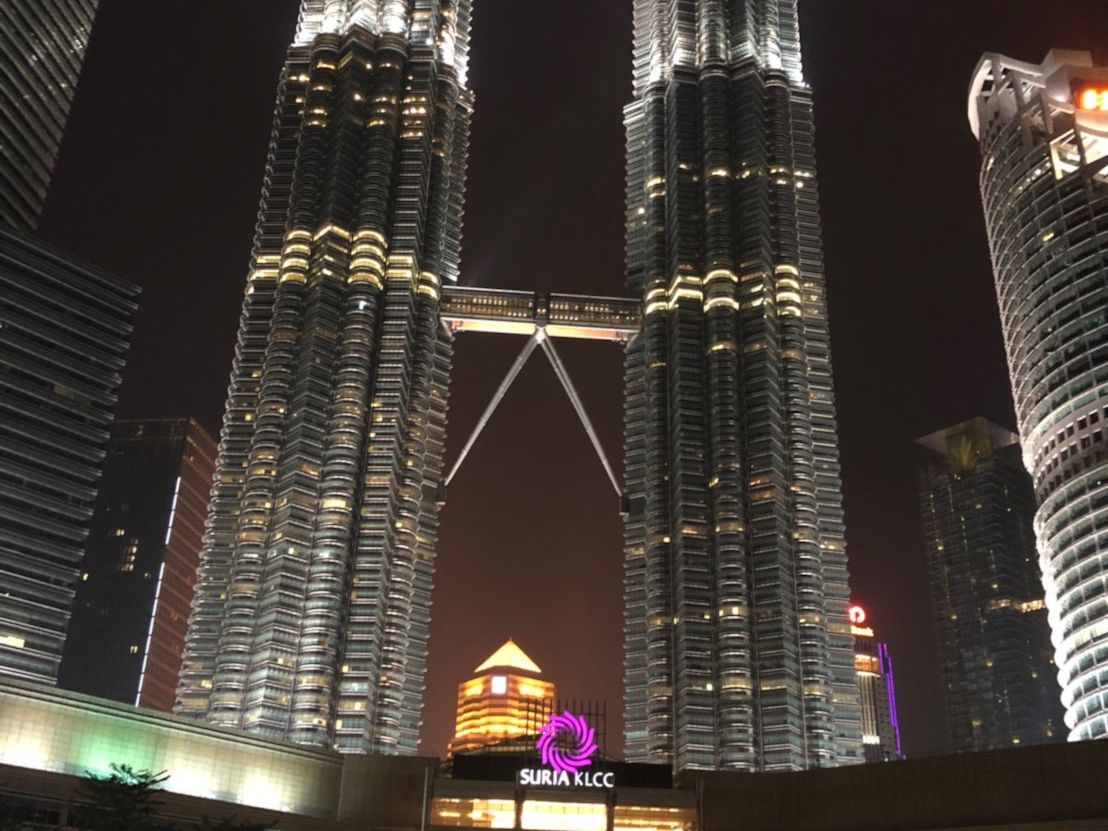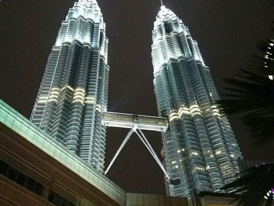 夜は、ライトアップされたツインタワーの 美しい姿を見ることがで出来ました。