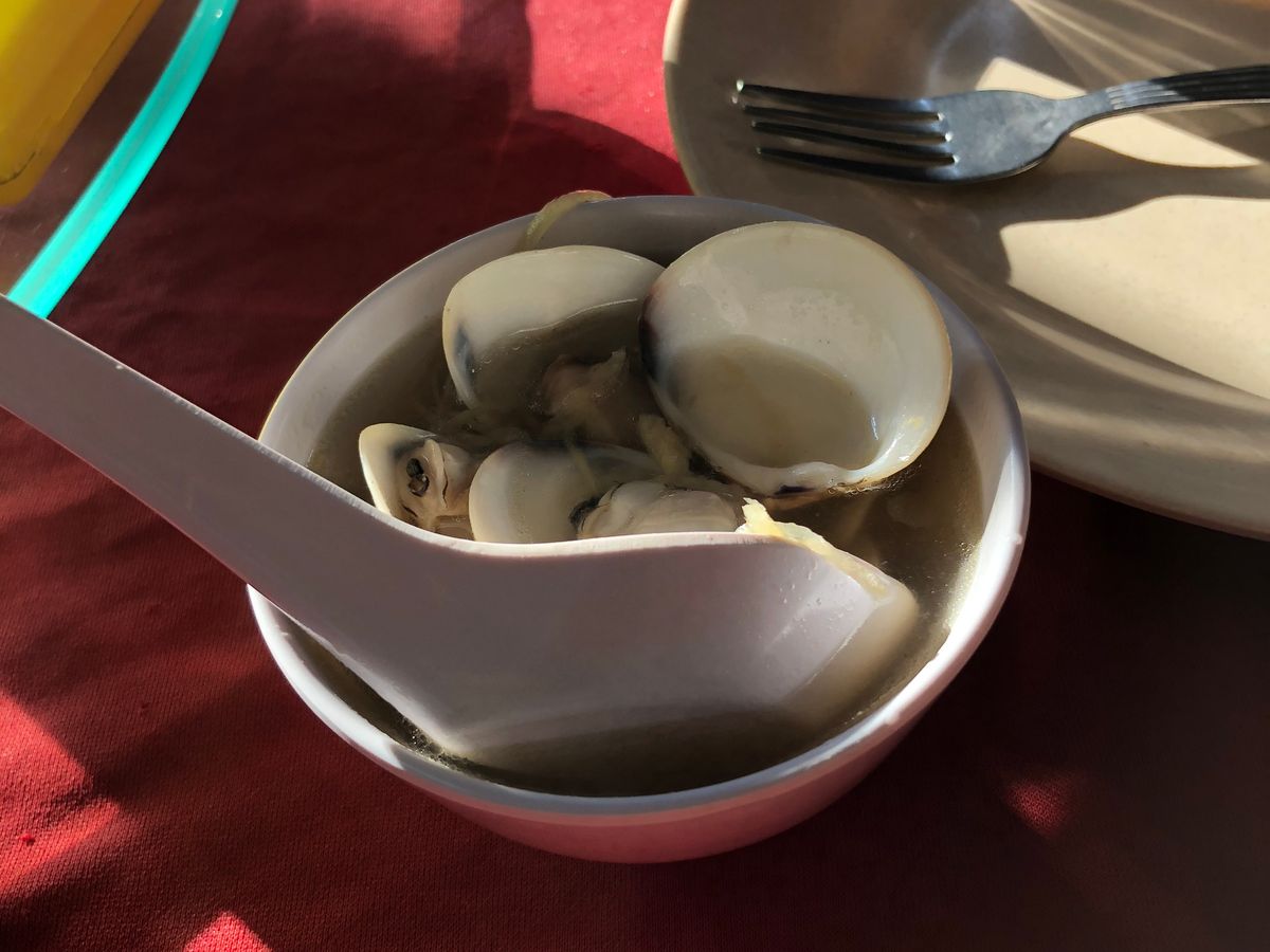 食事は場所柄それなり チャーハン・中国茶・貝のスープ・炒め物2-3品