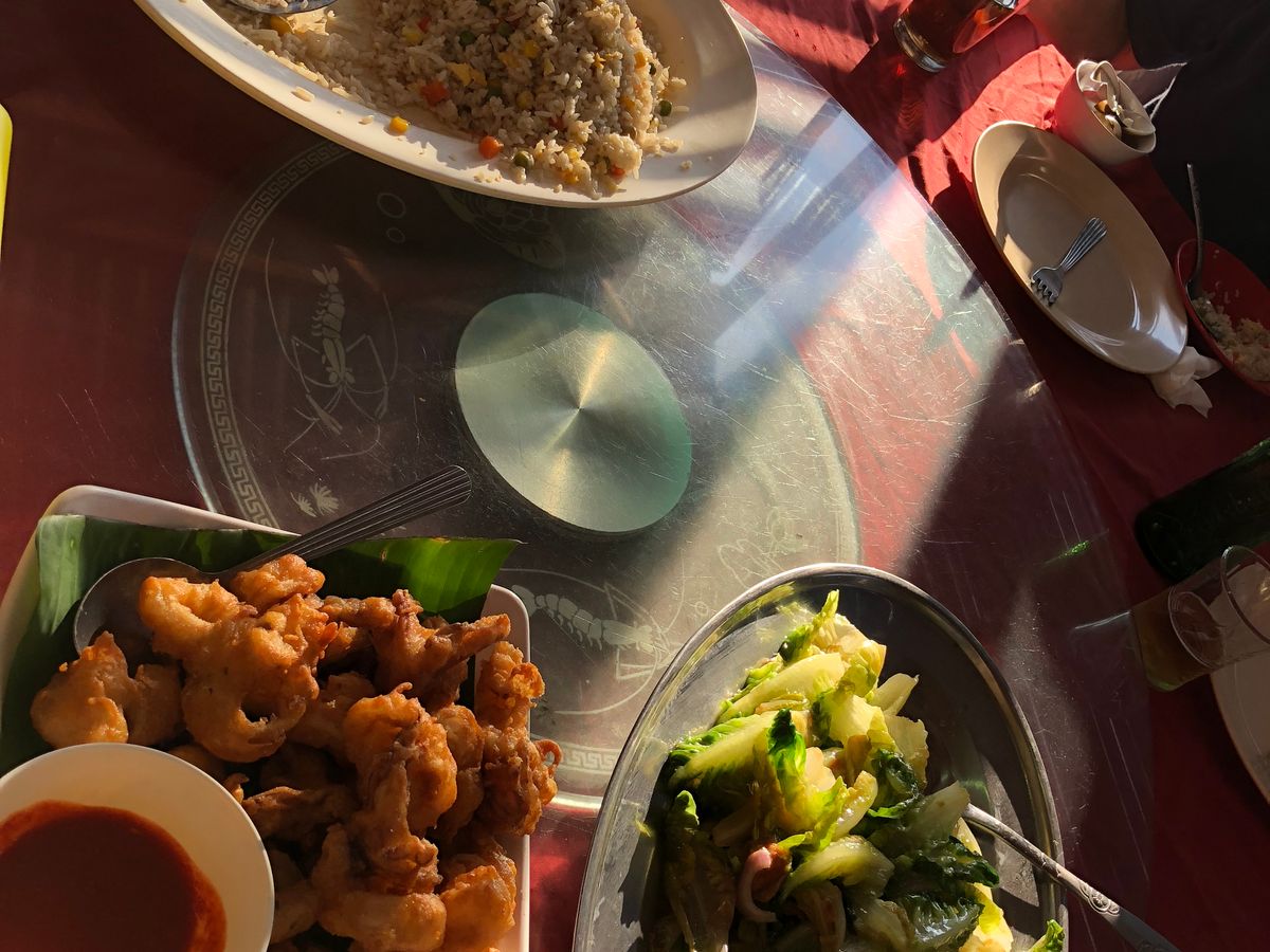 夕食は川沿いの中華屋さんでしたが、ザ!ローカルな感じでした。量が少なかったけど、sunsetが見れました。