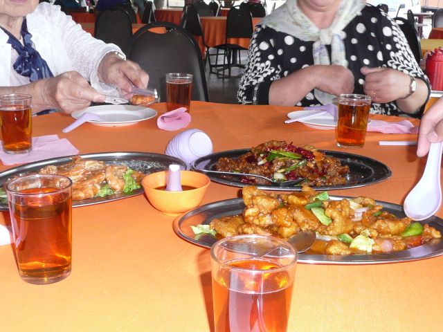 宵闇がせまるまで、近くの中華料理店で海鮮料理をたべましたが、カニ、エビ、イカ、小魚と十分な量で、味付けも日本人に合った普通の味付けで、おいしくいただきました。