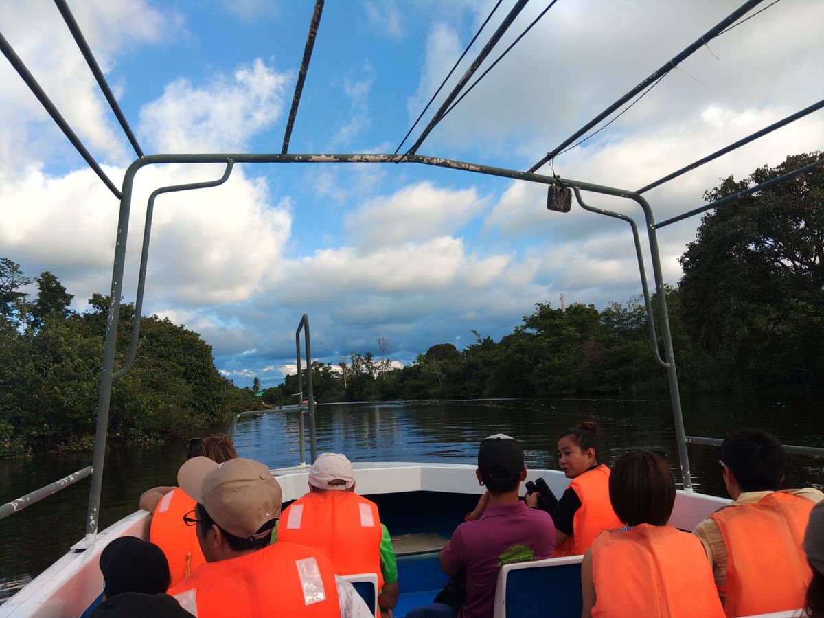 あいにく雨の中でのクルージングでしたが、テングザル、カニクイザル、ワニも見ることができました。