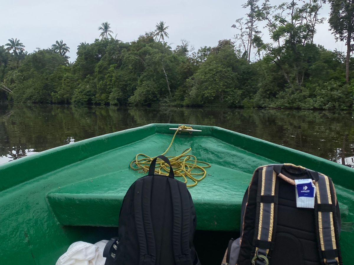 猿たちを驚かさないように行くために船は静かで全然揺れませんでした。