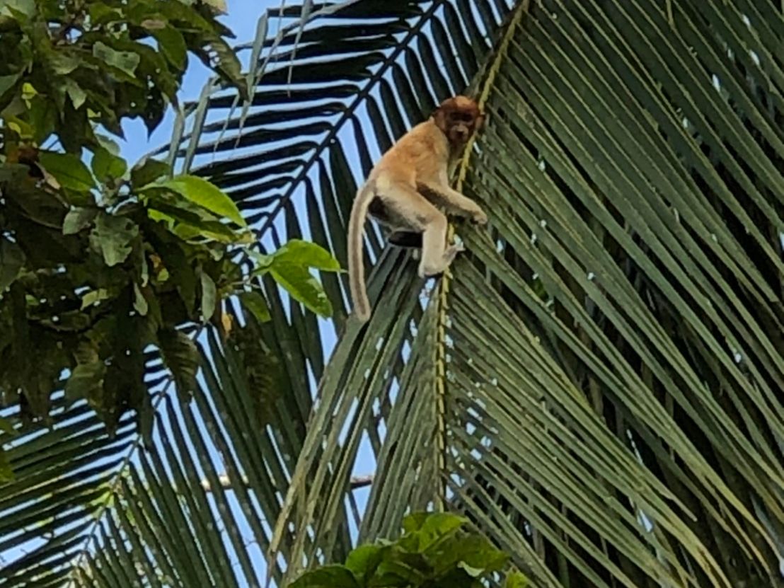 前半のテングザル発見リバークルーズではなかなかお目当てのテングザルが現れず、ダメかと思いましたが後半多くのテングザルが現れました。しかし距離が遠く写真に写すのは難しかったです。カニクイザルやミズオオトカゲなどもいまいした。
