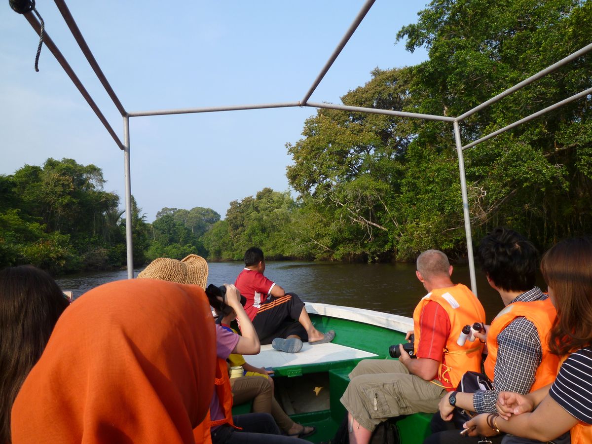 ディズニーランドのジャングルクルーズの様な船に乗りました。テング猿を始め3種類の猿を見ることができました。ホタルも日本と違う種類ですがきれいでした。虫よけを使っていれば半ズボンでも問題はありませんでした。上もライフジャケットを着けるために半そででも問題ないと思いますが、バスに片道2時間位乗るのでクーラー対策に長袖シャツを持っていた方が良いと思います。