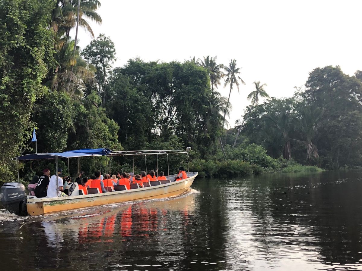 移動時間のことを記しても仕方ないのですが、往復4時間以上であり、バスの中では、休息する等以外することはありません。それと日本ではないですが、そちらの同内容のツアーは料金の差がだいぶあり、日本語ツアーが高いのも残念なところです。現地の環境に関する映像上映などあるとより知識が深められていいのではと思います。道は、舗装されてはいるものの、ガタガタしているところが多いです。天候がよくなかったので、たくさんの動物はみられませんでした。ガイドのコニーさんはとても丁寧な仕事ぶりで、テングザルをみつけるとなるべくいいスポットで見られる様に船を誘導してくれました。それについては満足しています。夕飯ですが、もう少し事前説明があるとありがたいのですが、ナシレマは美味しかったです。ただし、スパイスがきいているため、子どもが食べられるものは、付け合わせの野菜等になります。川ですが、現地の方はあまりエコに関心がない様で、使われなくなった船がそのまま捨てられた状態で残念に思いました。