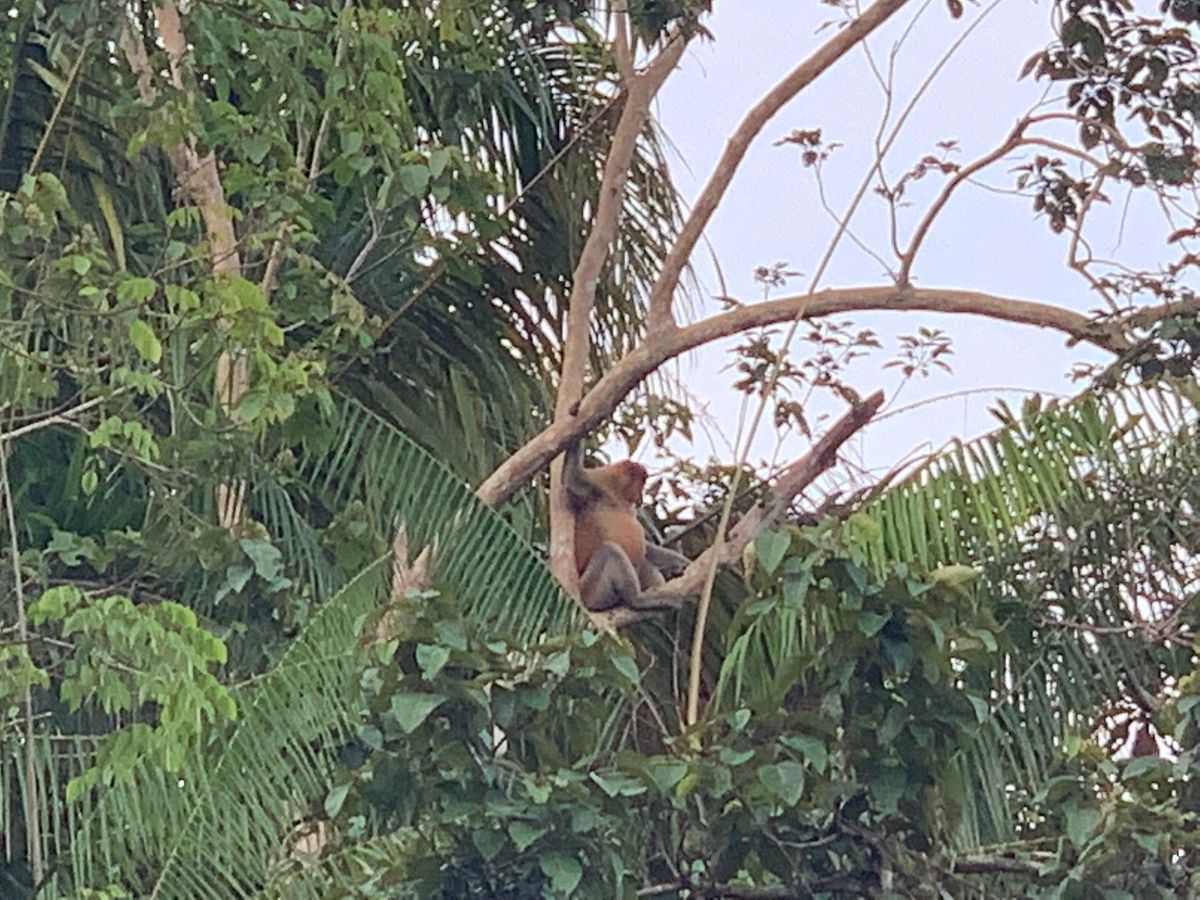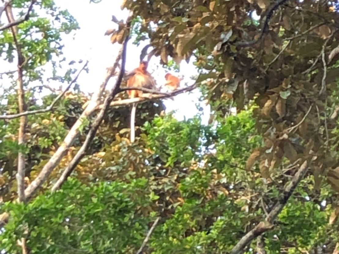 出発してものの5分程度ですぐにテングザルの群れに遭遇!その後もたくさんのテングザルや鳥などを観察することができました。