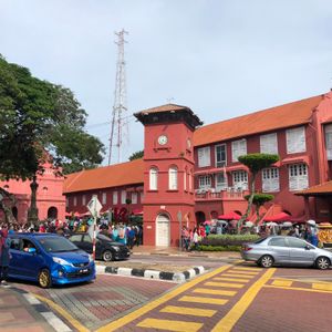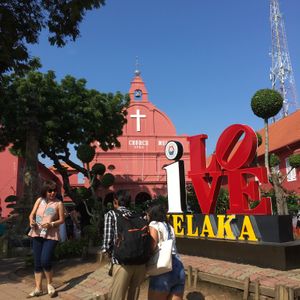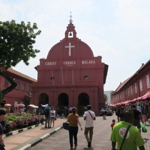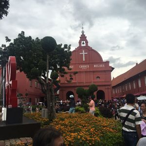マレーシアの世界遺産「オランダ広場」。「マラッカ・レッド」と呼ばれる赤茶色に染まった教会や周囲の建物が歴史の重みを感じさせてくれました。