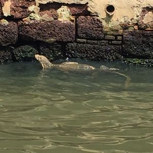 サプライズあり。マラッカリバークルーズでの出来事でした。乗船してまもなく、マレー水大トカゲの子どもに遭遇。一生懸命泳いでいる姿に、思わずガンバレと声をかけました。その後、大人のマレー水大トカゲにも会いました。こちらは、どうどうと日向ぼっこをしていました。