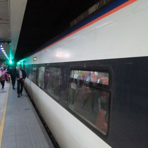 期待どおり(笑)電車は10分以上遅れて到着です。ベルトラのホームページでは、ディーゼル機関車が客車を引いていましたが、やって来たのは、近代的な特急電車でした。一緒に参加した方は、オーストラリア・ケアンズのキュランダ・シーニック・レールウェイの様なディーゼル機関車が木造の客車を引く列車を期待していたらしく、ちょっとガッカリしてました。