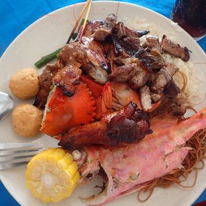 釣った魚の他にイカ、エビ、肉など沢山ありました。あまりタイ米は好みではないのですが、この時のチャーハンの味付けはよかったです。