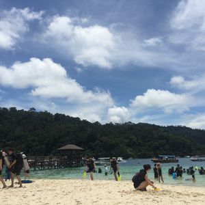マレーシア航空のロストバゲージにより何も荷物がなくもちろん水着もなかったので泳ぐことはできませんでしたが足までつかったりマットは貸してもらえたので綺麗な海を眺めながらゆっくりできました。移動で乗ったボートは結構なスピードで波もあったので揺れたりしてアトラクションみたいで楽しかったです!