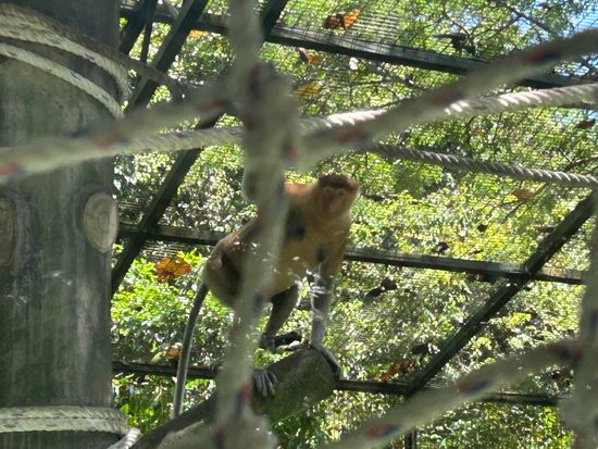 動物園は南国の植物を見るのも楽しい。動物たちは暑さでぐったり気味です。でもテングザル(メス)が見られます。