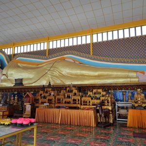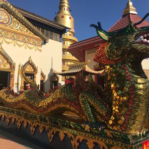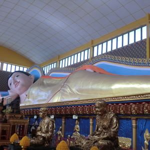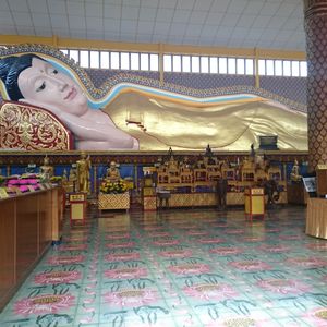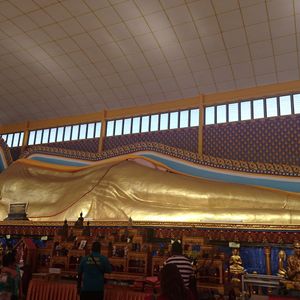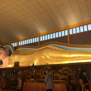ここは入り口から迫力ある龍がお出迎えしてくれてます。中に入ると部屋いっぱいに寝釈迦像が横たわっており、もう迫力いっぱいです。