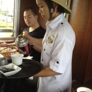 機関車が発車すると直ぐに朝食?(クロワッサンやデニッシュパンとコーヒー・紅茶)が出されます。ステラハーバーリゾートが運営しているようなので、昼食も含め、味や質、衛生面など満足できるレベルです。