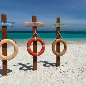 ブランコやハンモック、何より真っ白な砂浜とエメラルドグリーンの海が、素晴らしいです!