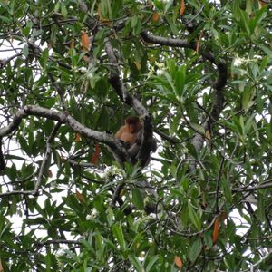 天狗猿は大きな木の上に小さく見る事が出来ました、翌日動物園で実物を見ました。