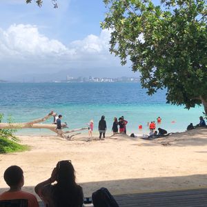 あいにくの荒天(晴れているが波が荒い)での参加でした。島に行く船が小さかったためかなり揺れました(揺れるを通り越して弾む感じでした。)。船に弱い方は天候次第では厳しいかもしれません。悪天候のため海も濁っていましたが、どちらの島でも魚を見ることが出来ましたので、天候さえよければとても綺麗と思われます。また、島自体も整備されておりとても綺麗でした。そしてなによりもガイドさんがとても良い方で最高でした!日本語ペラペラな現地の方で、コタキナバルのこともいろいろ教えていただきました。ランチはお弁当なのでどうかなと思っていましたが、おかずやデザートがたくさん入っていて美味しくいただきました。天候の良い時にまたお伺いしたいです!
