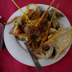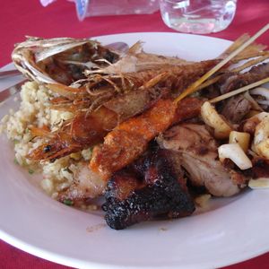 BBQはビュッフェ形式で、魚の丸上げや、イカ、エビとピラフがでて、デザートはマレーシア独特のものでとてもおいしかったです。