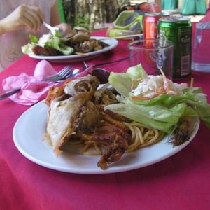 食事は現地料理のビュッフェ形式,スケジュールに余裕があるので,食後にノンビリしたり,さらに泳ぐ方いたりと様々でした,