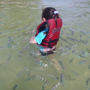 桟橋の下に気持ち悪いぐらい魚がいて、寄ってくるので気持ち悪くて