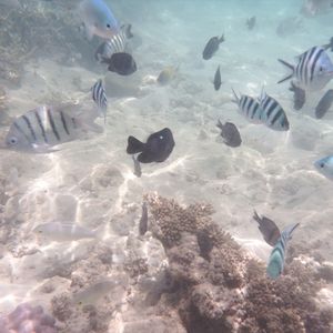 海の水もサンゴも思いきり綺麗とは言えませんが、魚はたくさん泳いでいて、それなりに楽しめました。カクレクマノミを見つけると意気込んでいた娘が、本当に発見してくれてチョット感動。ライフジャケットを着てのシュノーケリングなので、泳げなくても大丈夫です。