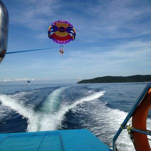 島でのアクティビティーは、パラセーリング・バナナボート・シーウォーカーがあります。島に到着するとセールスに来ますので、その場で申し込めます。興味のある方は現金多めに持って行きましょう。