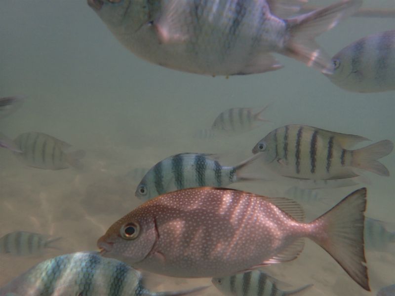 サピ島でシュノーケルをし、珊瑚の近くには小さな小魚、エイ、ウツボなど色々な魚が見れました。