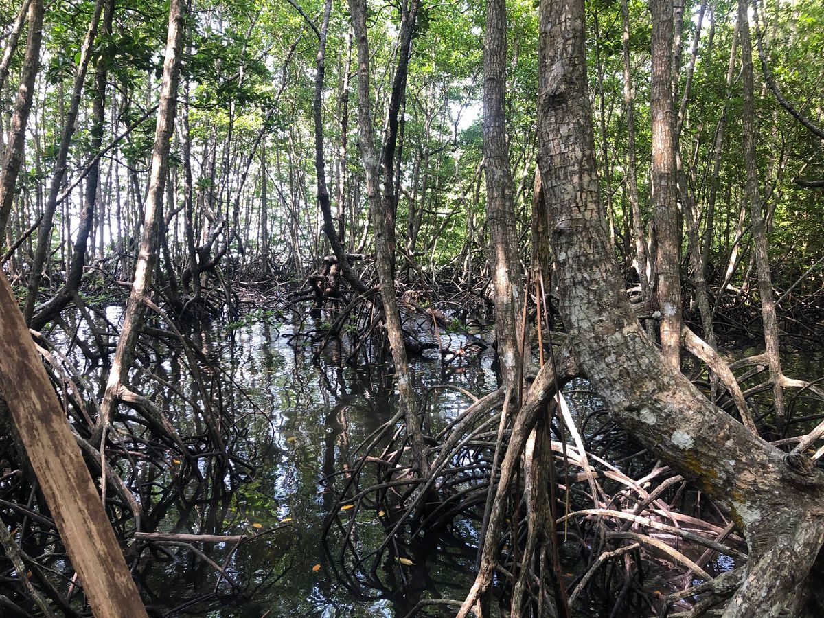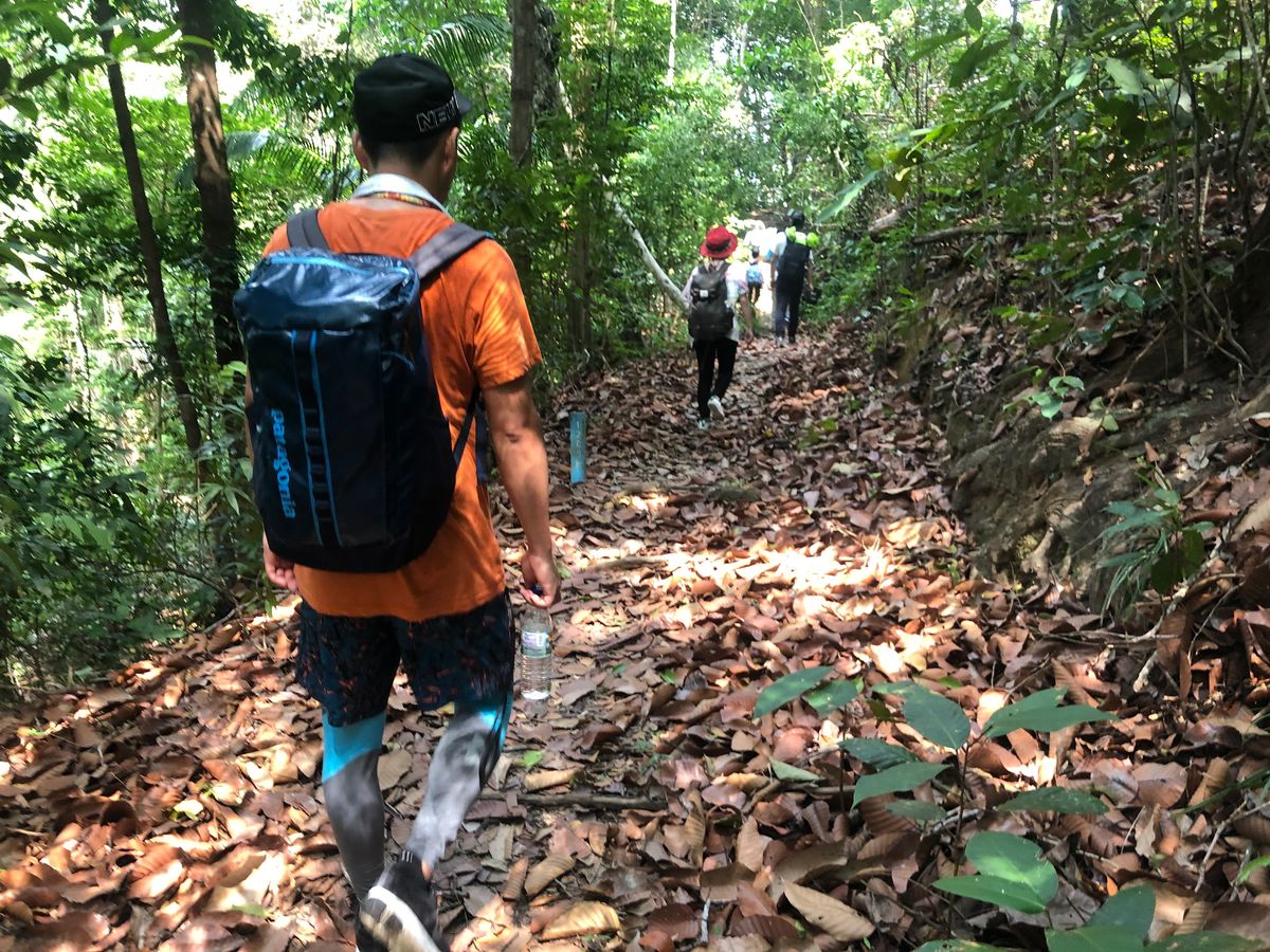 歩き始めてすぐにオオトカゲに遭遇しました。その後コウモリを見たり、マングローブやイチヂクの木や太くて大きなサルスベリの木などガイドさんから丁寧に教えていただきました。残念ながら野生の猿に遭遇することはありませんでした。動物にもっと会えたらより楽しかったと思いますが仕方がないことだと思えます。こんな機会がなければ海外の島をトレッキングすることはないと思うのでよい経験でした。トレイルに時々落ちているゴミが気になりましたが、これは参加者が捨ててしまうのだとしたら悲しいです。
