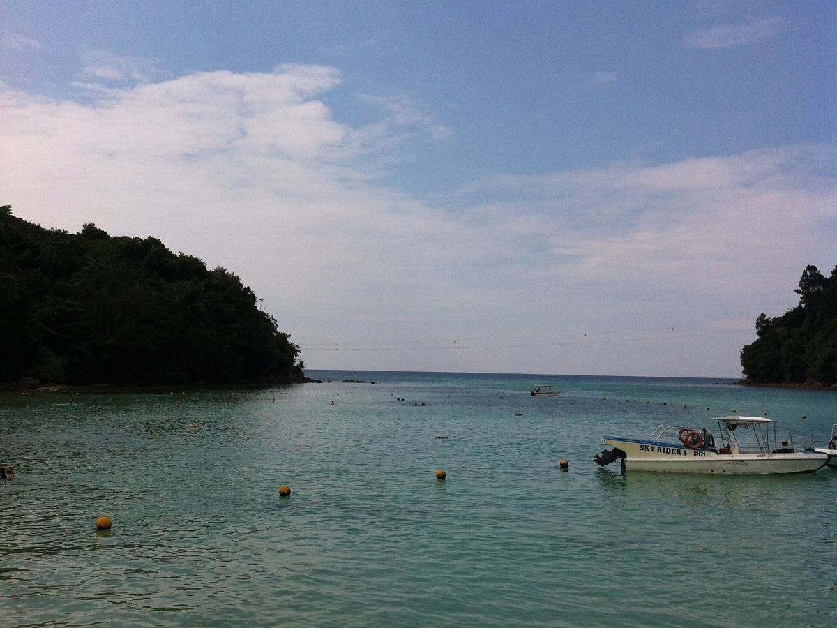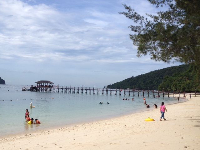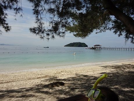 雨季に訪れたため、透明度はいまいちでしたが、サンゴの辺りを泳ぐと、色鮮やかな熱帯魚が群れてきました。シュノーケル、ライフジャケット、バスタオルの貸し出しがあります。ライフジャケットで体が水面に浮くため、泳ぎが苦手な人でも安心ですが、ジャックナイフなどで数メートル潜りたい人には、ライフジャケットよりフィンの方がありがたいかも。泳ぎ疲れたら、遠くコタキナバルの市街地を望みながら、ボーっとするには最適です。