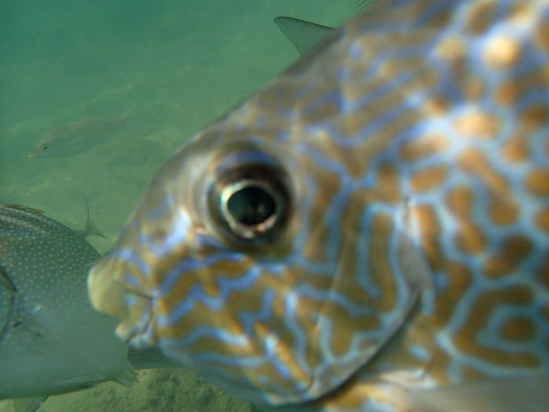 魚たちが自分の浮かんでいるすぐ下を通っていきます。これには娘も大喜びでした。マヌカン島では着いた時間が早かったので他の観光客も少なく、独占の様でした。