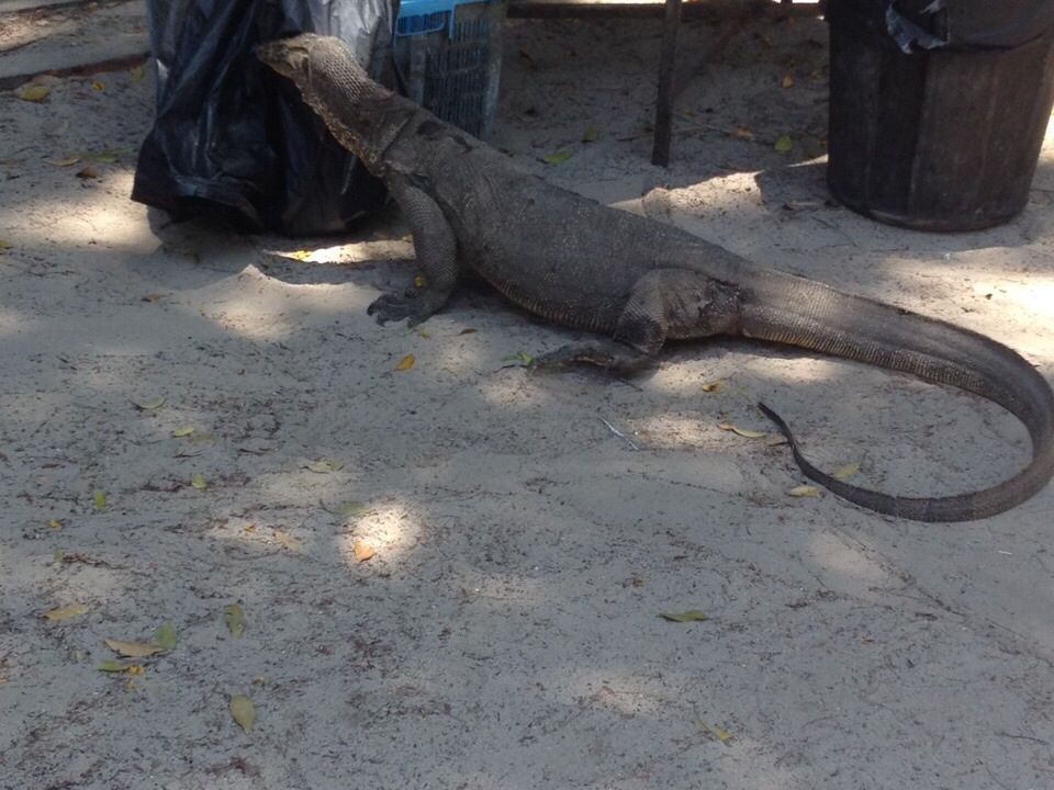 サピ島には大トカゲが居り、舌をペロペロ出しながらノソノソあるいている。昼時には餌を求めて出てくることも。