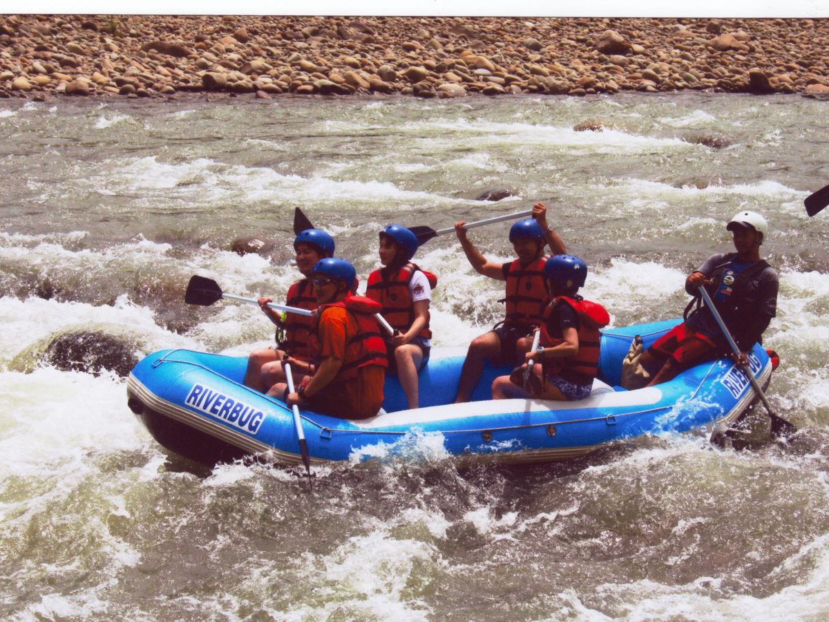 2009年8月26日(水)に小学4年の息子も期待をして参加しました。当日は日本語のガイドさんにもラフティングに同乗していただいて、説明を聞きながらいろいろな景色を見て、流れを楽しみました。猿を見つけるのはガイドさんはさすがだと思いました。(私たちでは、なかなか見つけることは難しかったです。)途中でボートから下りて川の流れを楽しむ場所で流されるのを楽しみました。今回のコースは初心者向けと言うことでしたので次回はもう一段階上のコースにチャレンジしたいと思います。子どもにもむいているコースだと思います。