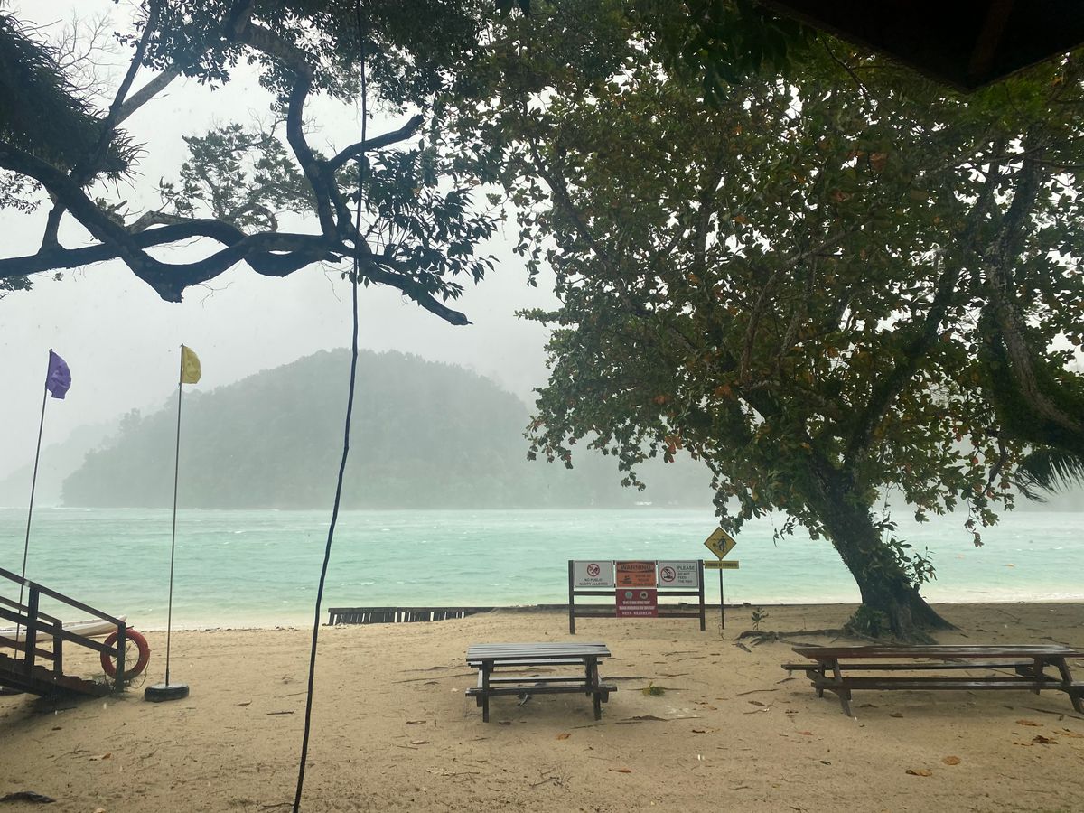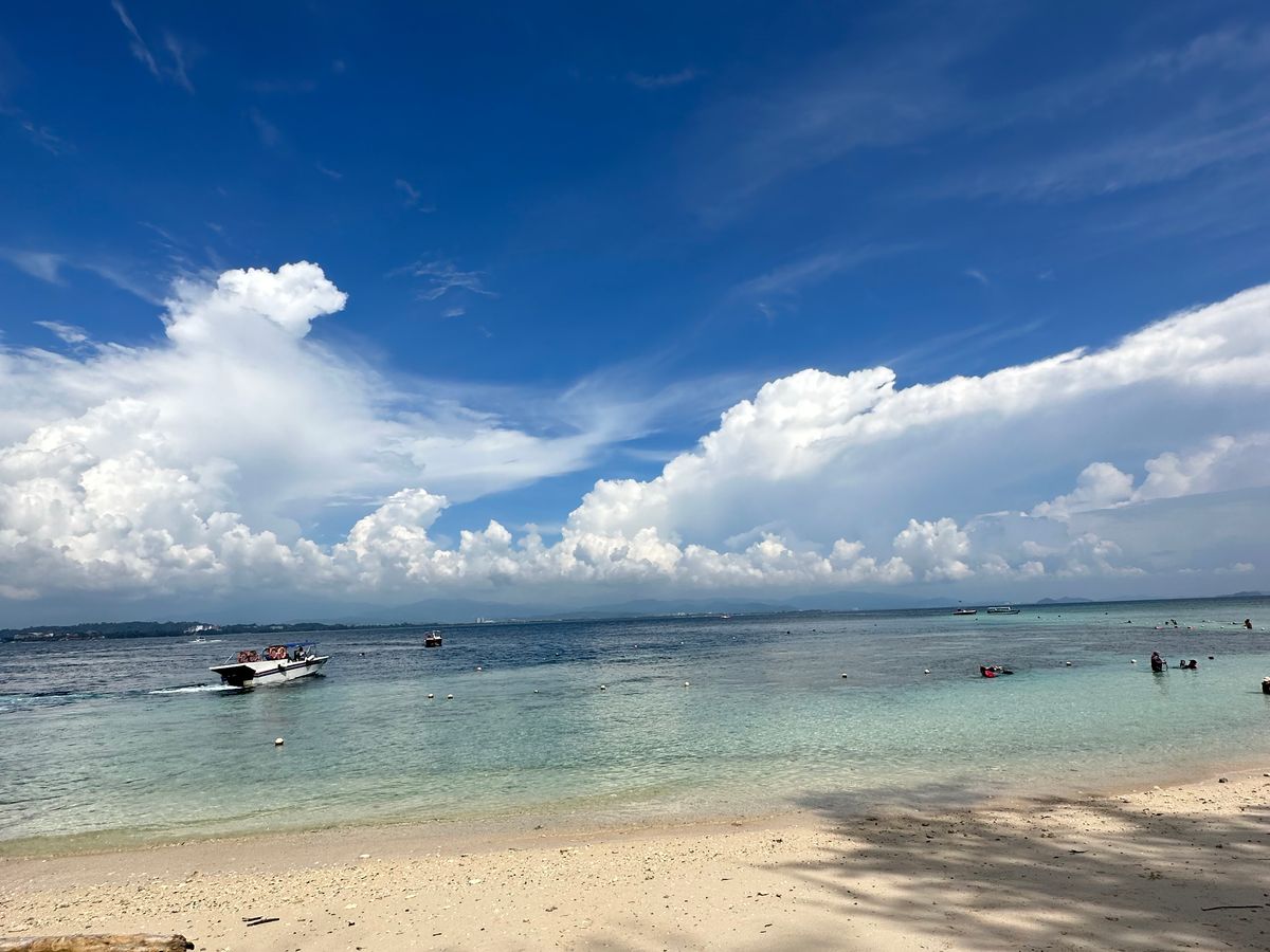 ツアーの船はシャングリラホテルの施設からの出発で、お手洗いなどもきちんと整備されていました。出航時はお天気だったのですが、サピ島に到着してからまもなく大雨になってしまいました。お昼まで悪天候が続いたため、マムティック島には行かず、サピ島だけで早めに帰路に着いたのですが、日本語ガイドの方が船の時間変更手配など細かく気を遣ってくれたので、残念な天候ではありましたが良い思い出になりました。島の施設的には、翌日別ツアーで行ったマムティック島やマヌカン島に比べるとイマイチで、床に穴の空いた小屋での休憩でしたが、ツアーというより施設の問題なのでそこは仕方ないかと思いました。ランチボックスはシャングリラホテルのローストビーフサンドとチーズケーキで、かなりのボリュームがありました。海は雨の合間を縫って入りましたが、こじんまりしたビーチながら楽しめました。