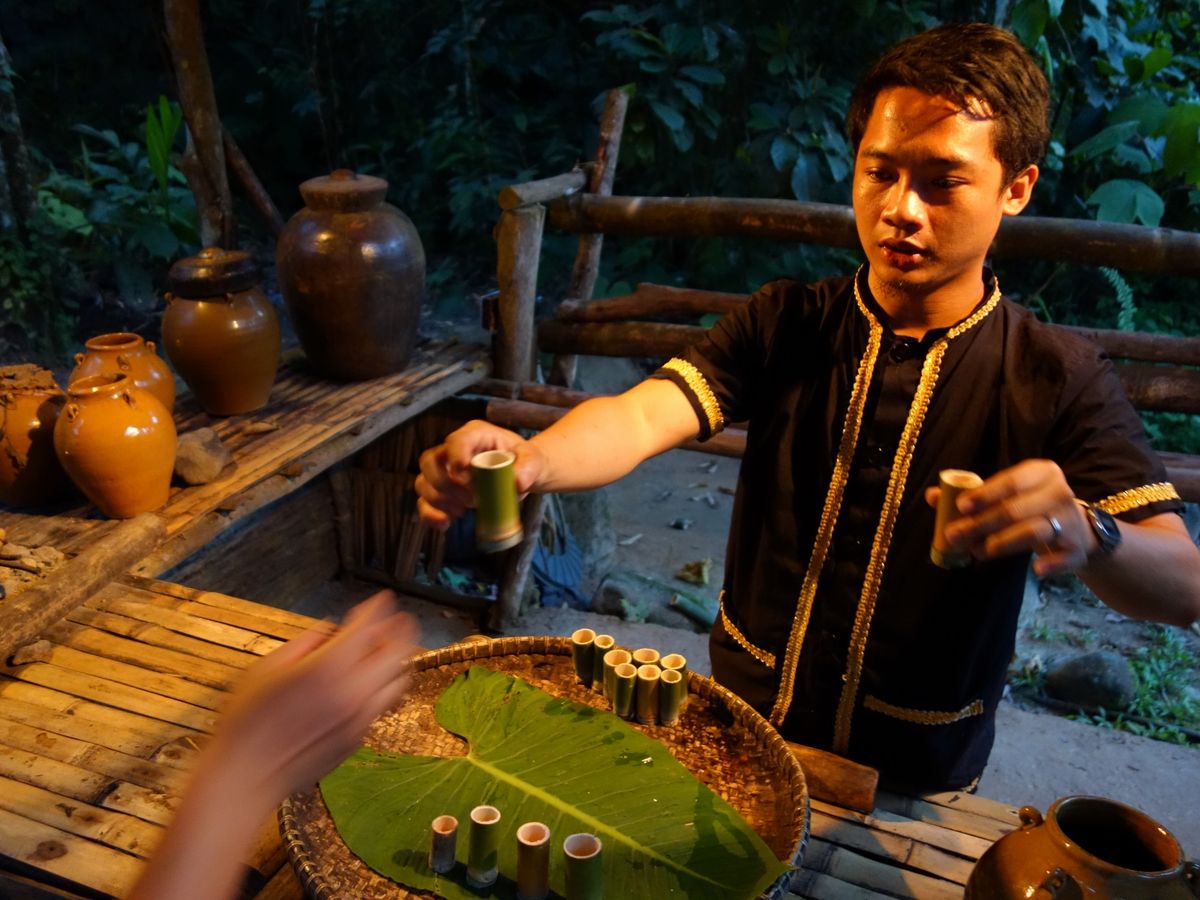 伝統的に作られているどぶろくや焼酎の試飲をさせてもらい、どれも美味しくお土産に買って帰りたいほどでした。蜂蜜ジュースやパンダンジュース、揚げ菓子などの試食もあって甘党には嬉しいツアーでした。