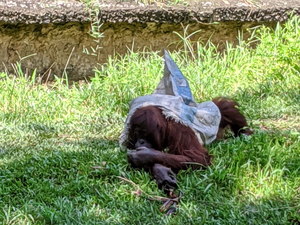 オランウータンも暑さでバテていたのでしょうか。。。動物ショーは素朴ですが、ローカルのお客さんもノリがよく楽しめますね。