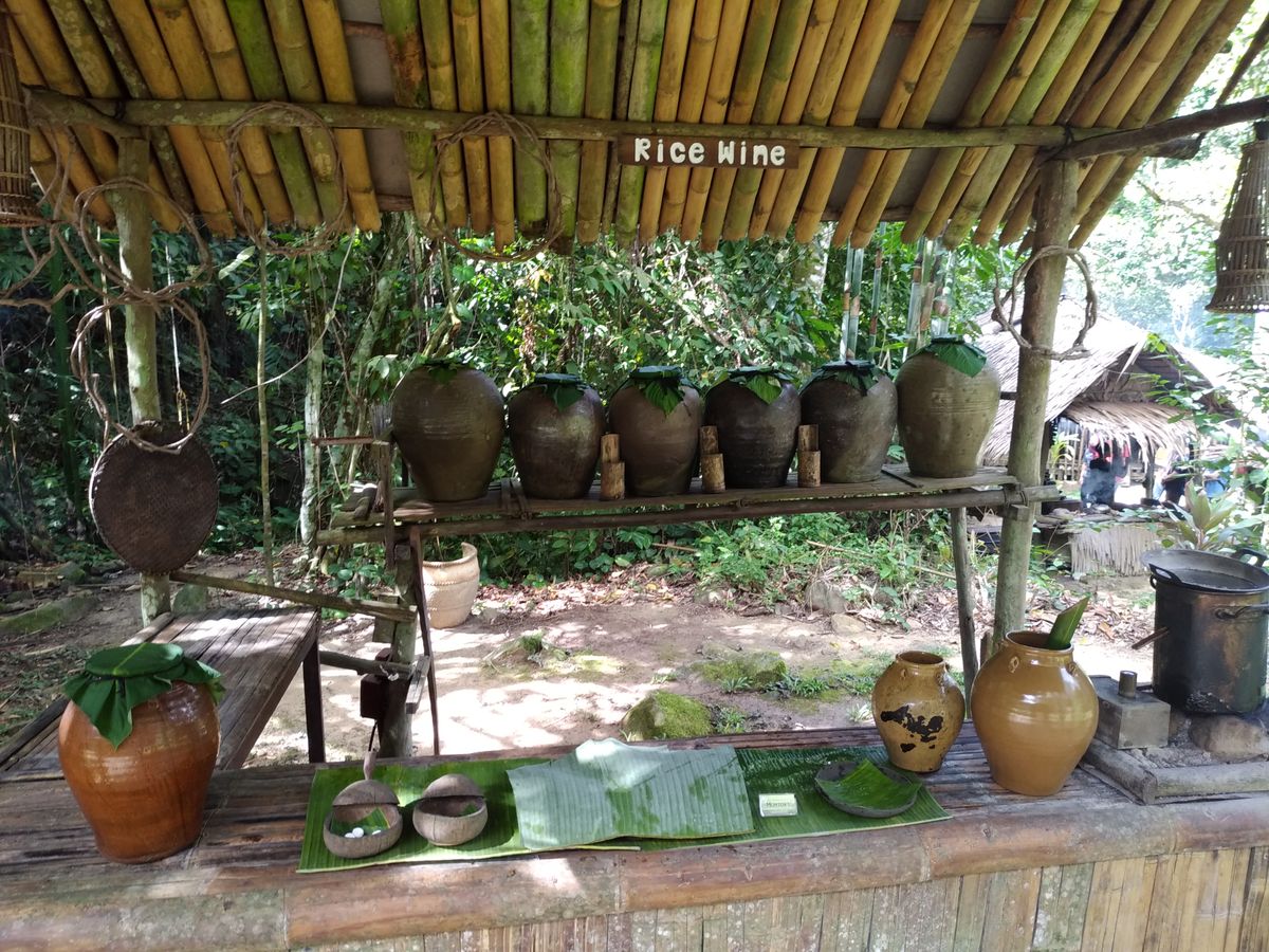 伝統的に作られているどぶろくや焼酎の試飲をさせてもらい、どれも美味しくお土産に買って帰りたいほどでした。蜂蜜ジュースやパンダンジュース、揚げ菓子などの試食もあって甘党には嬉しいツアーでした。