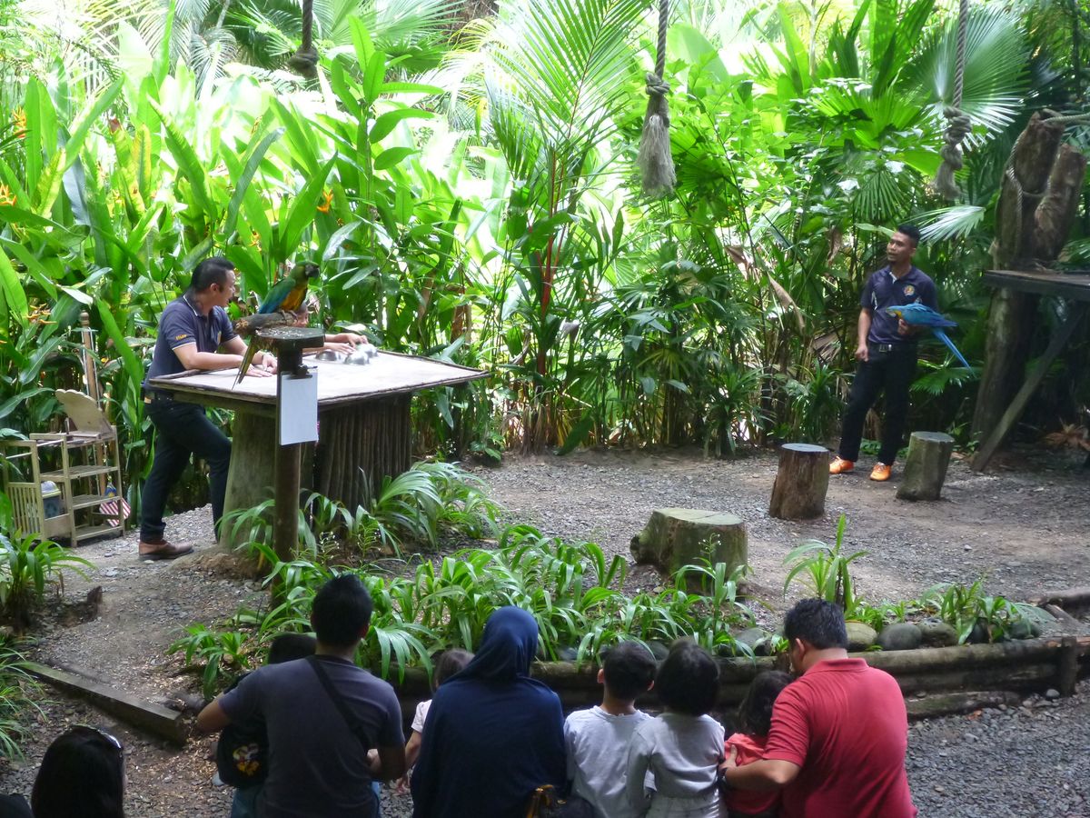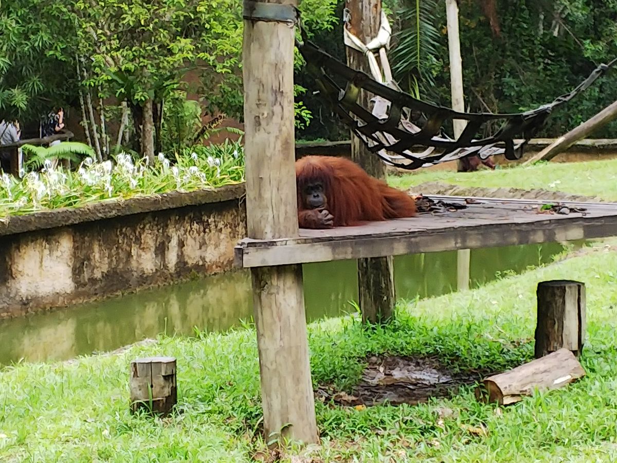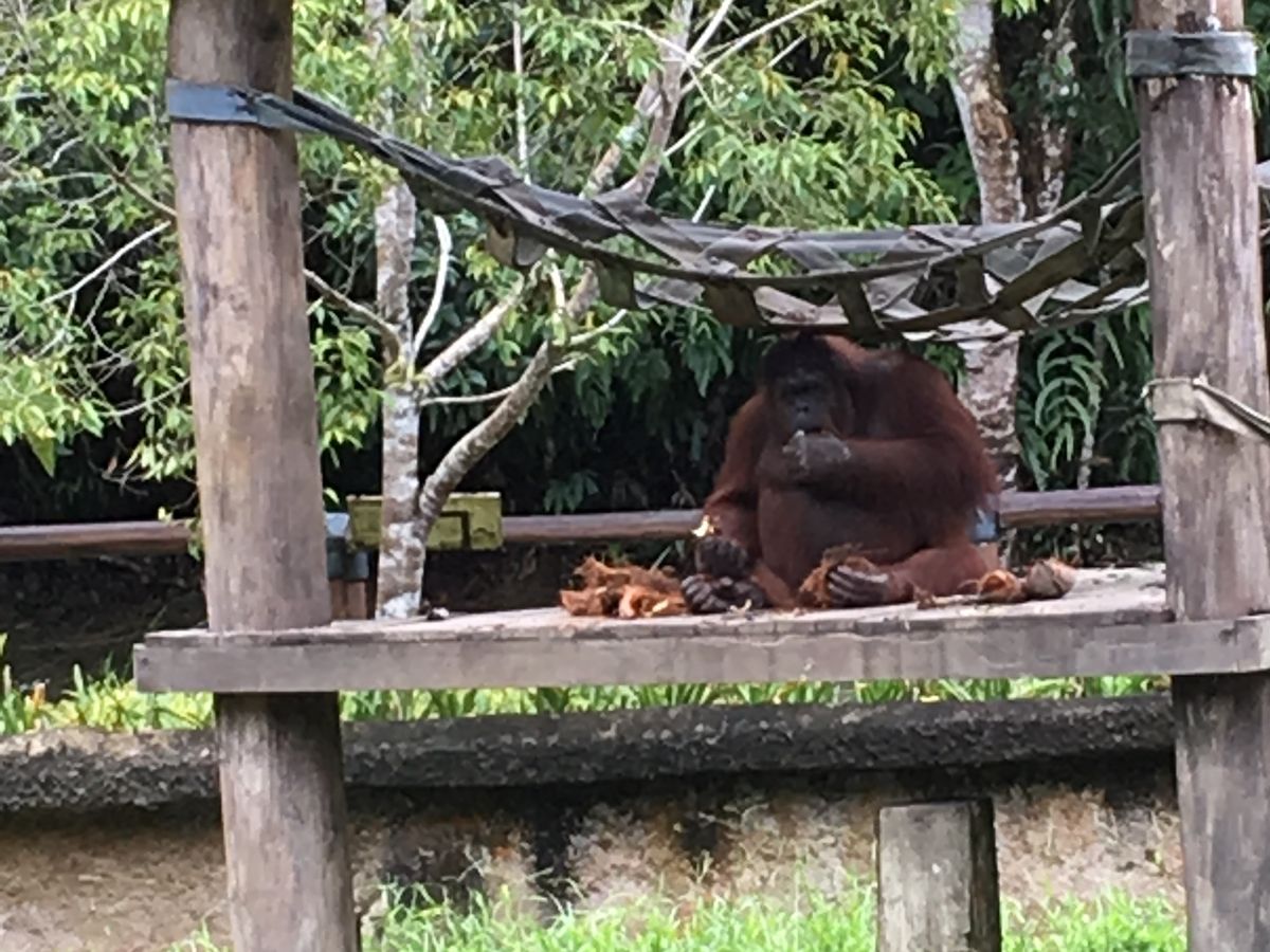 ロッカウィー動物園は思ったより小規模で、暑い中を歩き回るにはちょうど良かった。動物の数と種類は予想より少なかったが、マレー熊やオランウータンなど、可愛い姿が見られた。ショーも短いが楽しめる。私たちは今回のボルネオ旅行の初日に参加したので、その後ジャングルを歩いていて(会えなくても)いそうな動物の姿など想像できて、ある意味、順番としては良かったかな。