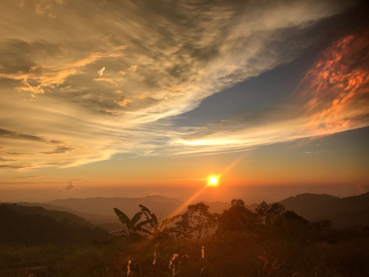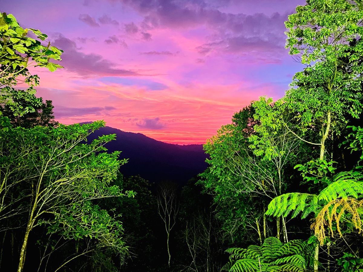 標高1000mくらいのところにあるレストランでマレーシア料理をお腹一杯食べて先ほどのファームへ戻る頃はちょうど日没 夕日がジャングルとマッチして素晴らしかった!!
