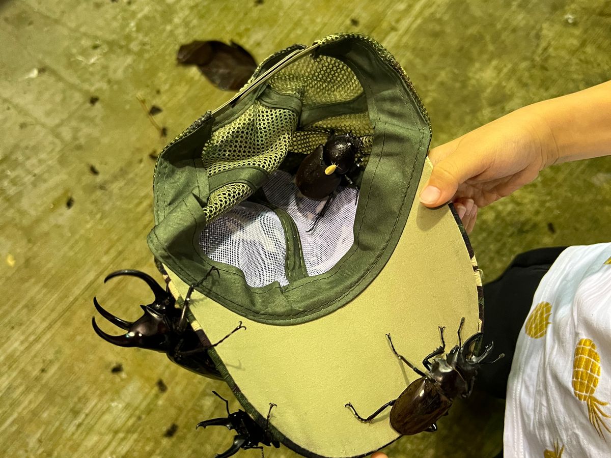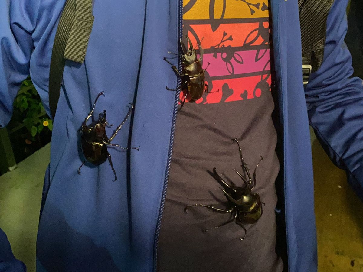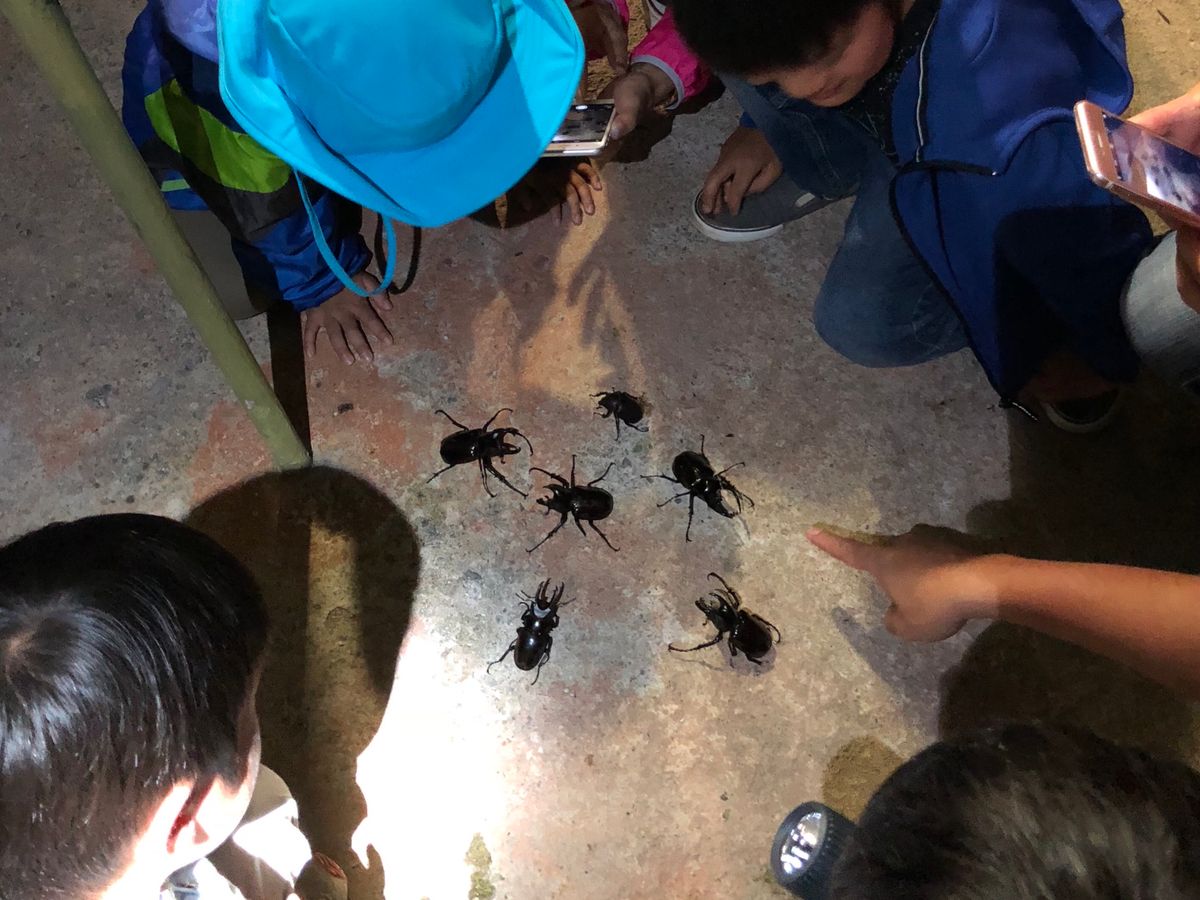 7才と4才の子供とで参加しました。三本角のカブトム、オオクワガタが大集結して参加していた10人程の子供達が大はしゃぎ。本当に貴重な体験を楽しく過ごさせて頂きました。2−3のツアーが一緒に標本作り、カブトムシ体験をしていましたが、ほとんどの参加者が日本人だとか。場所が標高800m程の山の中で、虫除けスプレーを嫌がった長男は、それなりに刺されていましたので、しっかり散布した方が良さそうです。夕ご飯は、標本作りの場所から更に山頂に向かって車で30分ほど、標高1000mくらいはありそうな場所で肌寒かったです。長ズボンを蚊対策で履いて行きましたが寒さ対策にもなりました。長袖までは持って行きませんでしたが、何か羽織る程度あった方がよかったかなと思いました。