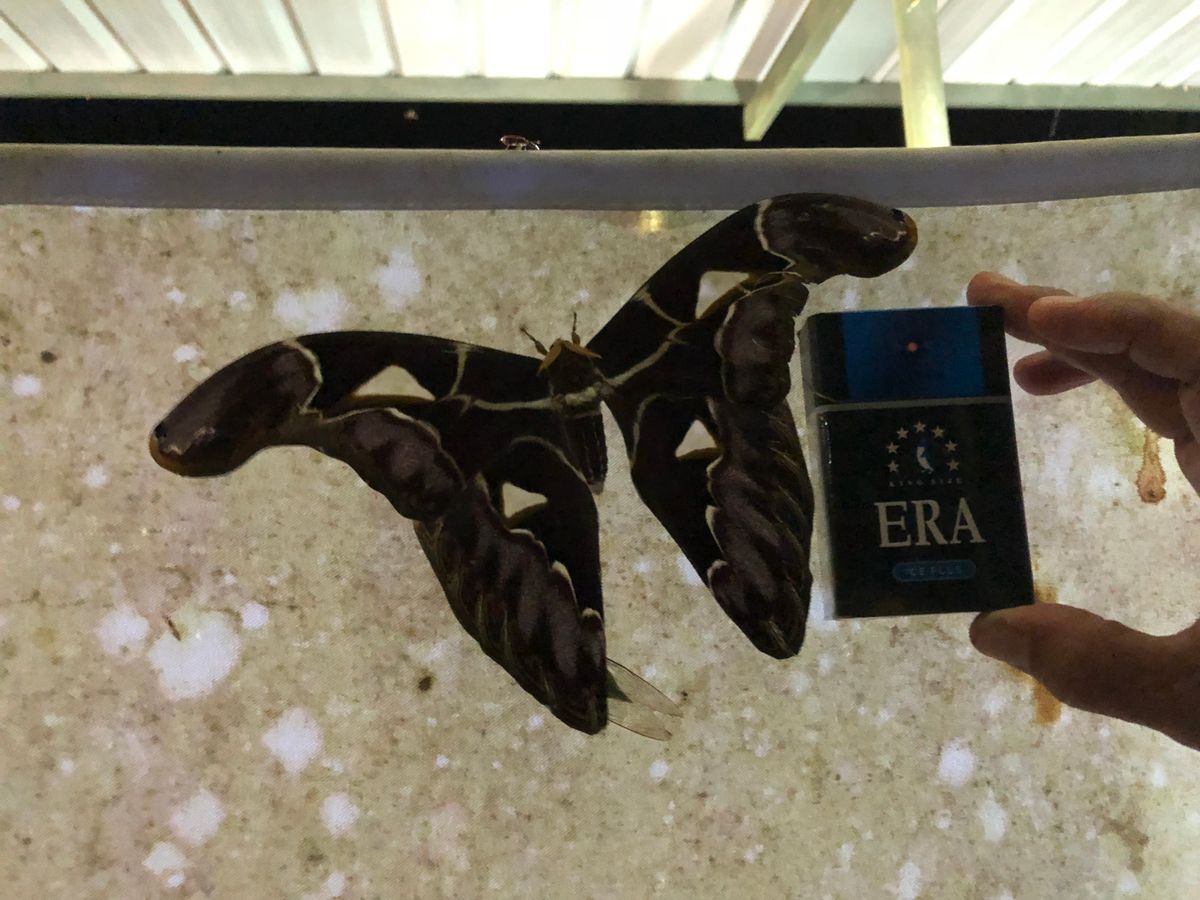 仕上げは現地の先生が実施してくれるので、その間は蝶を見たり、植物を見てバタフライパークを散策し、夜に灯火採集をする場所を見ました。もうすでにクワガタがくっついていて子供も私もテンション上がりました。