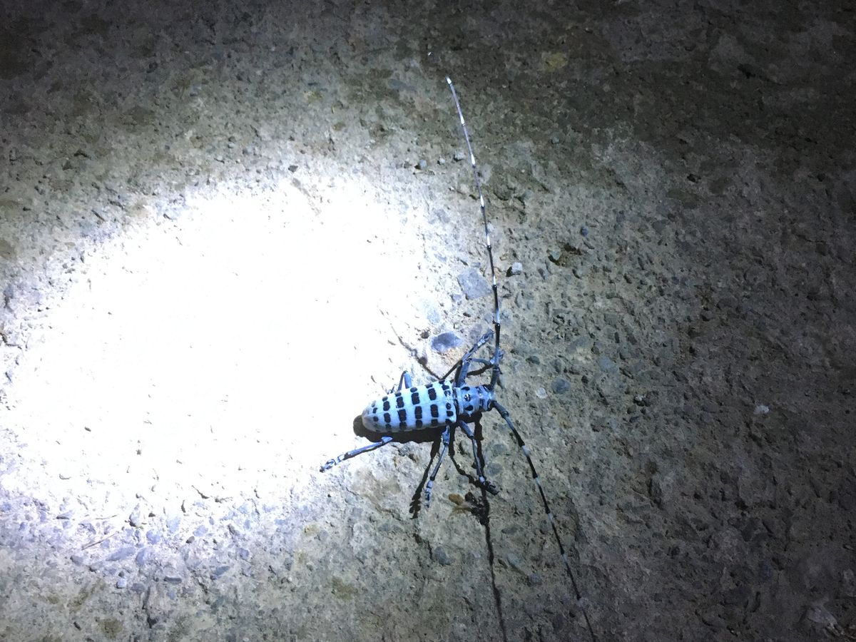 ただ、ガやハチもいっぱいくるので、長袖長ズボンだけでなく、夜でも帽子やフードを被った方がいいです。髪の中に虫が入る可能性があります。