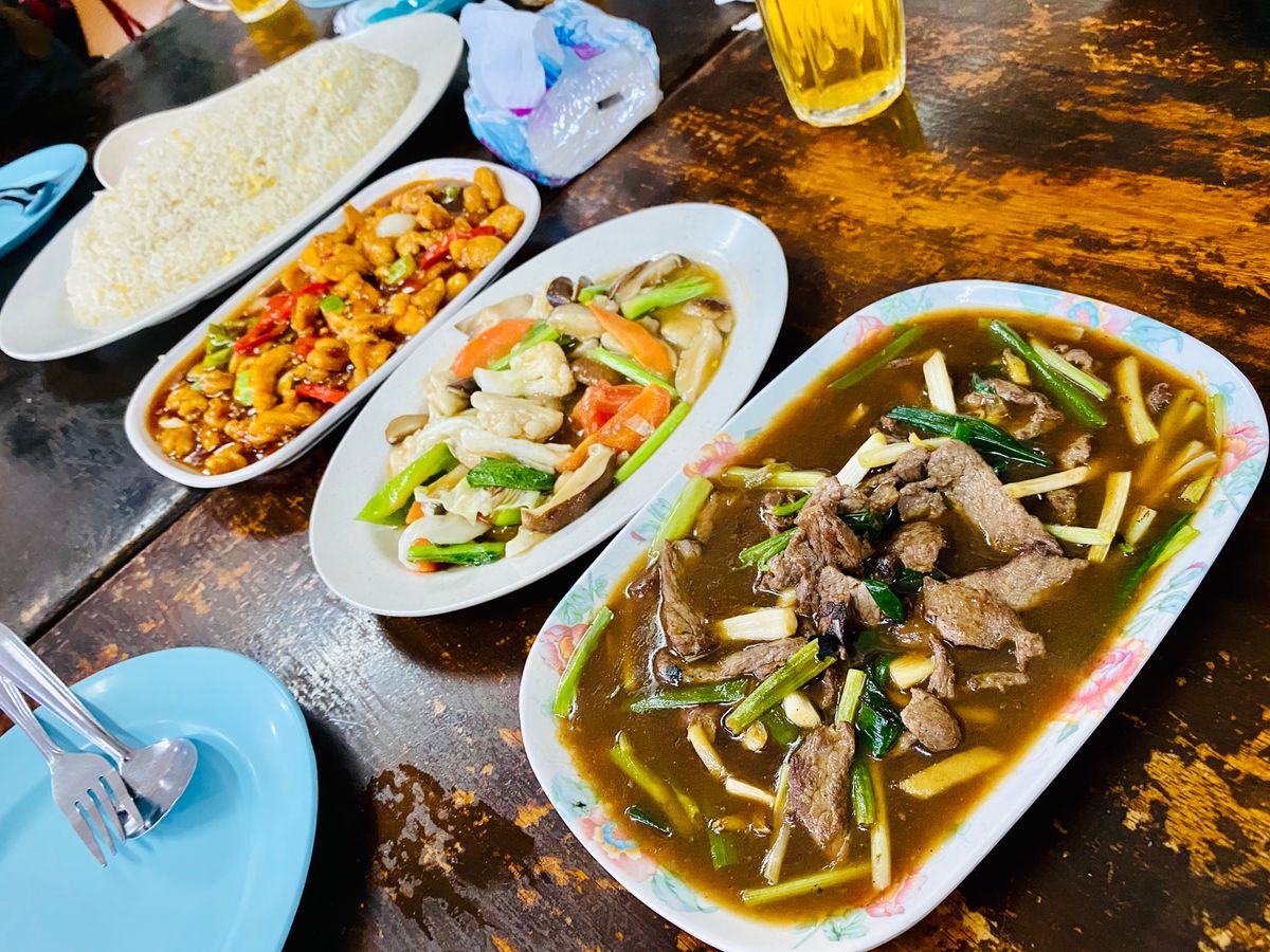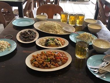 中華料理が夕食でしたが、地元の方の食堂みたいな感じで、とても美味しかったです。標高1000メートル近くのところに食堂はあり、夜はかなり涼しくなるので、何か羽織る物は持って行った方がいいです。
