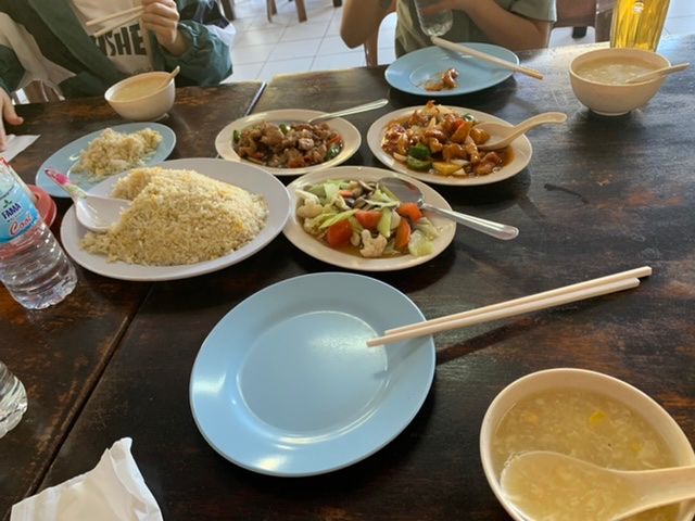 下見した場所の先にも見学できるところはあるようなのですが、そこまでは行かず、その後は夕食を食べに山の上に30分ほど行った中華料理屋さんへ。暖かいお茶と、コース料理とスープが提供されます。