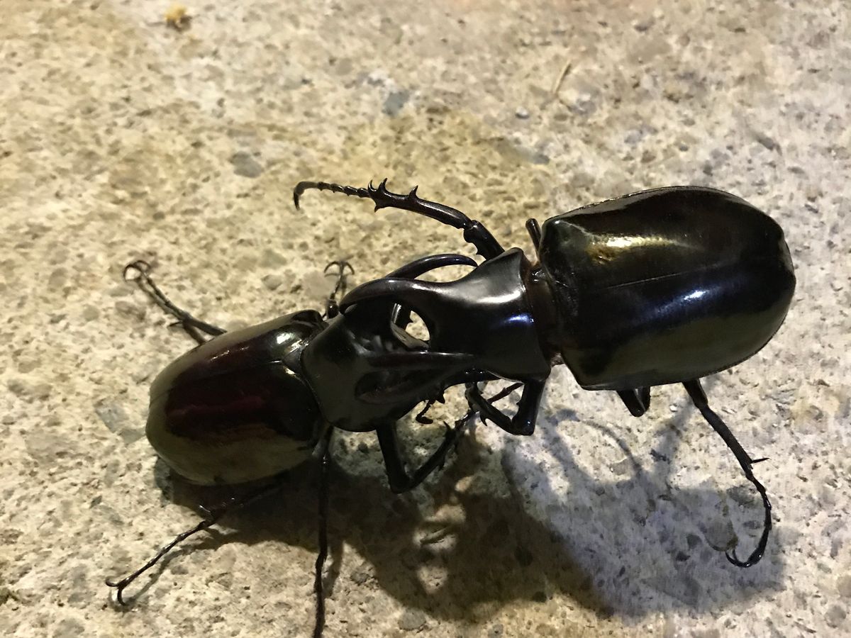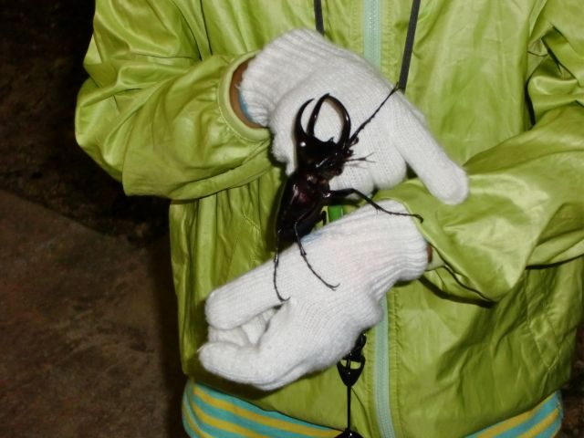 ツアーでは、4~5匹の図鑑でみるような3本角のカブトムシ(複数種)と、4~5匹のクワガタ(やはり複数種)が飛来してきており、長時間、満足いくまで、がんがん触れました。うちの小学生のこども達は大喜びでした。