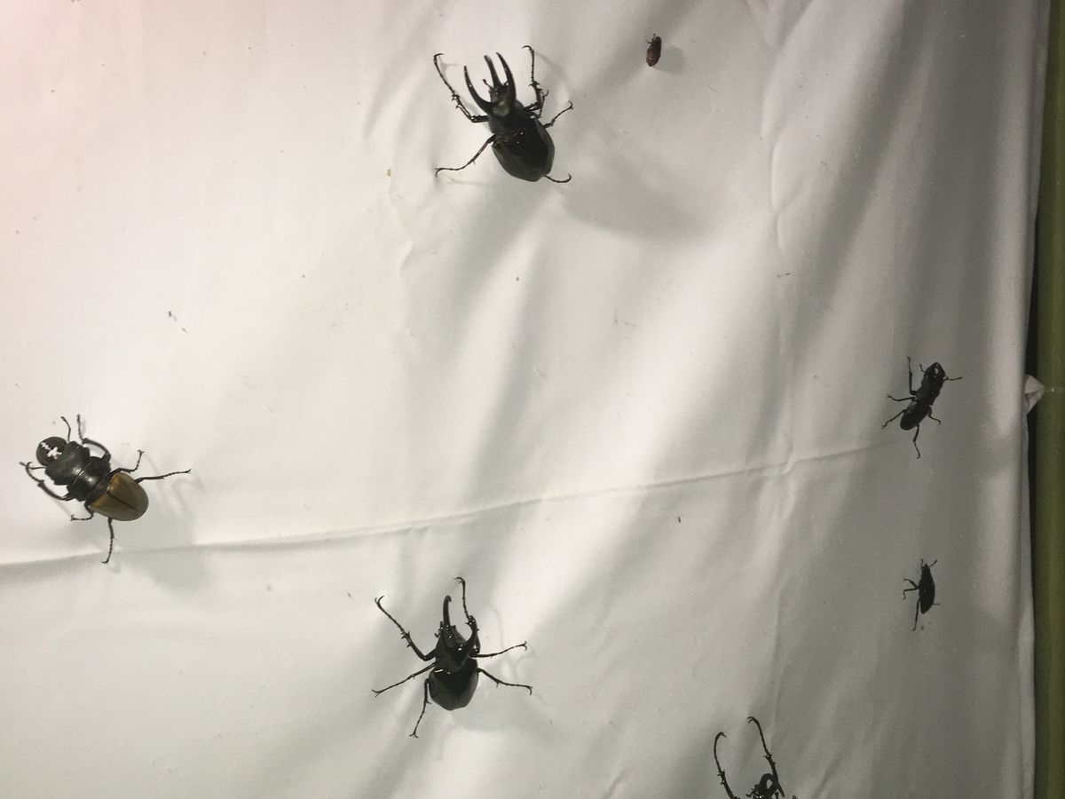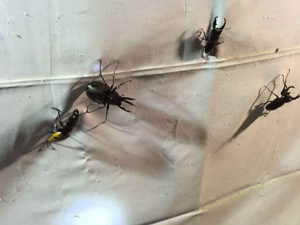 6時ごろに一番カブトムシ、クワガタは増えるそうです。そのあとは蛾が増えます。他にも大きなバッタも飛んできました。