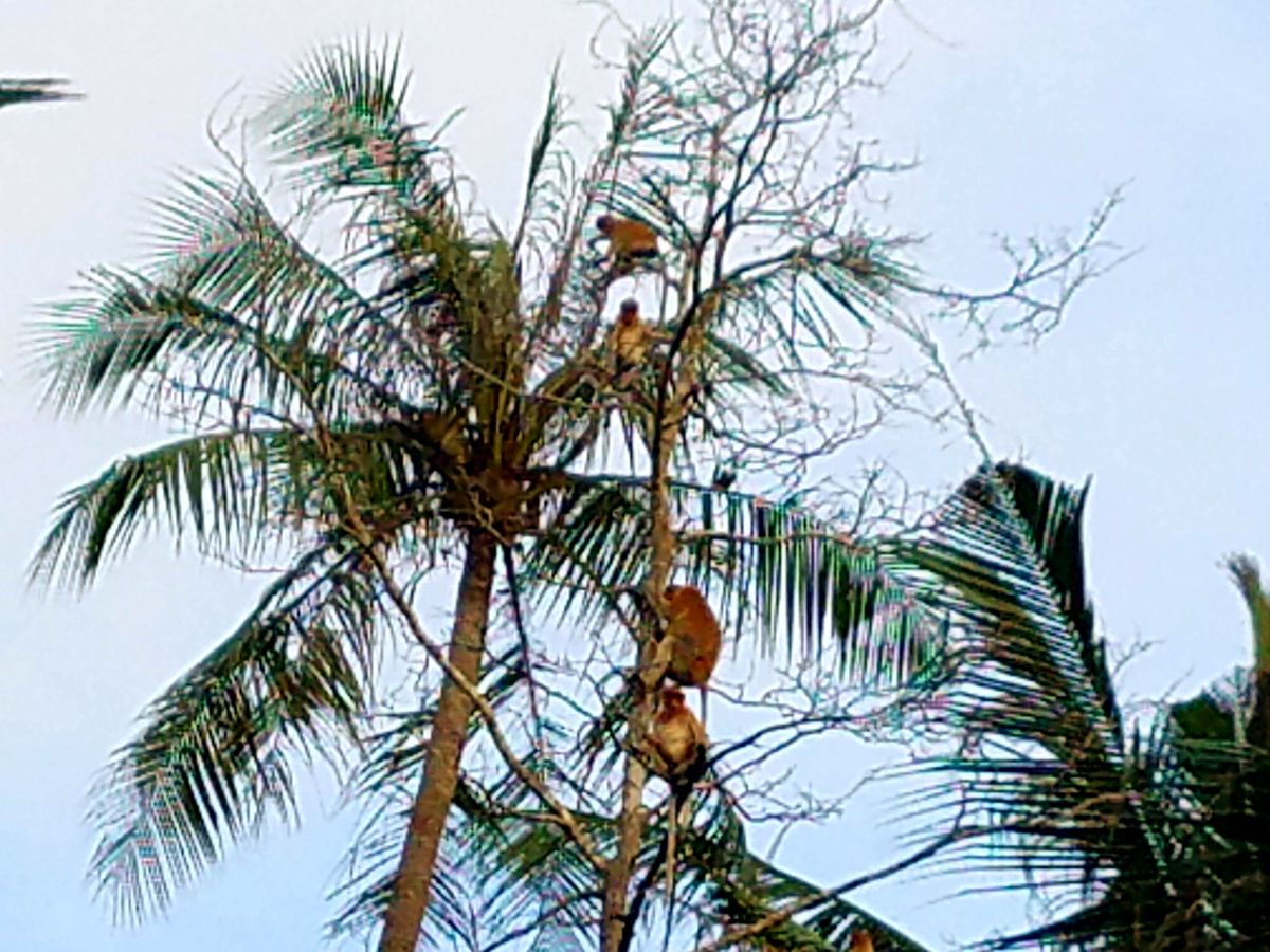 戻る前に、茂みの中の細い道に入ってくれた途端、目の前の木を雲梯のように伝い飛ぶサルが!!何頭も見ることができ、もう興奮でした。