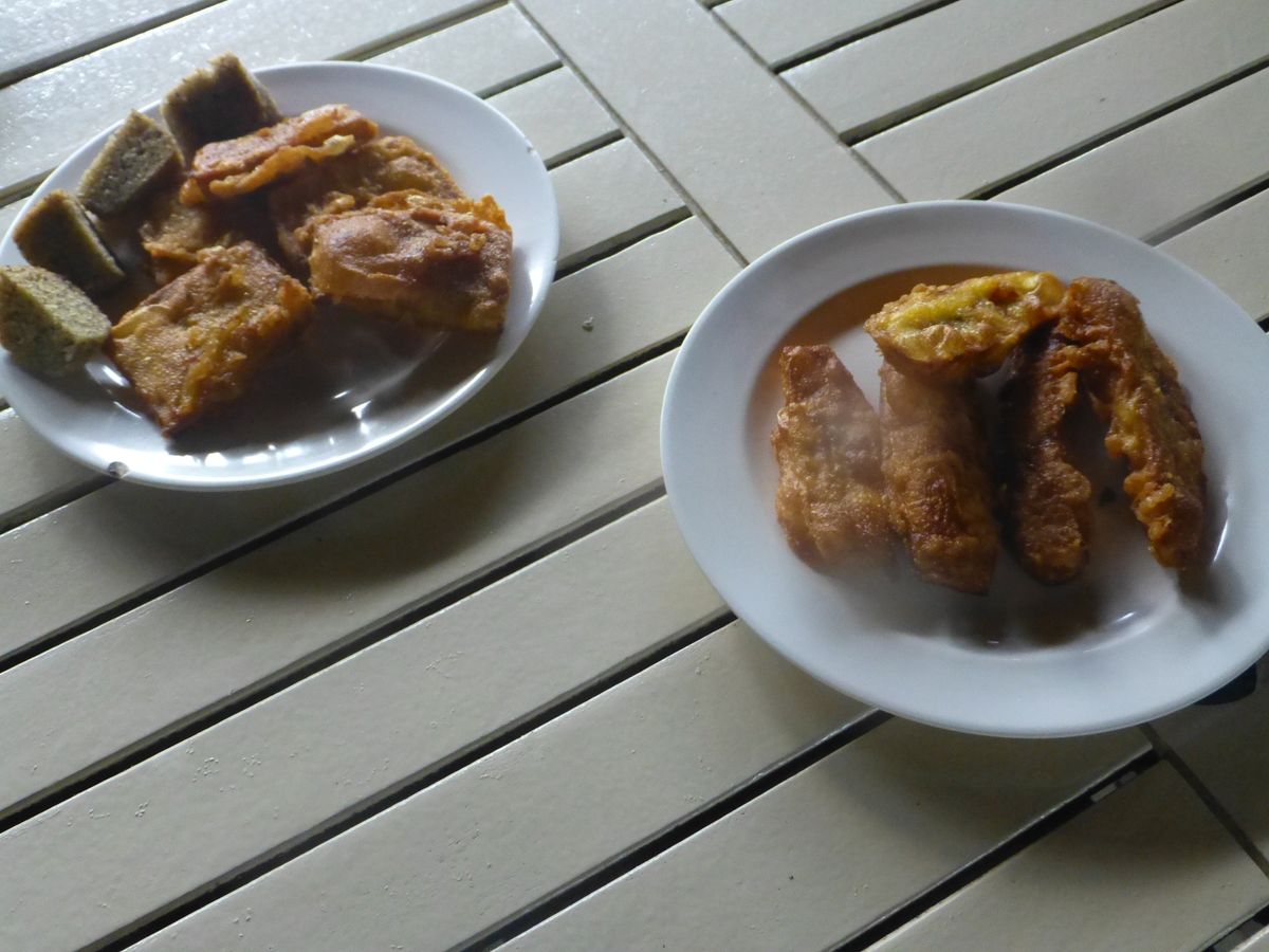 バナナやサツマイモの甘い天ぷらやドーナツで移動の疲れが取れました。