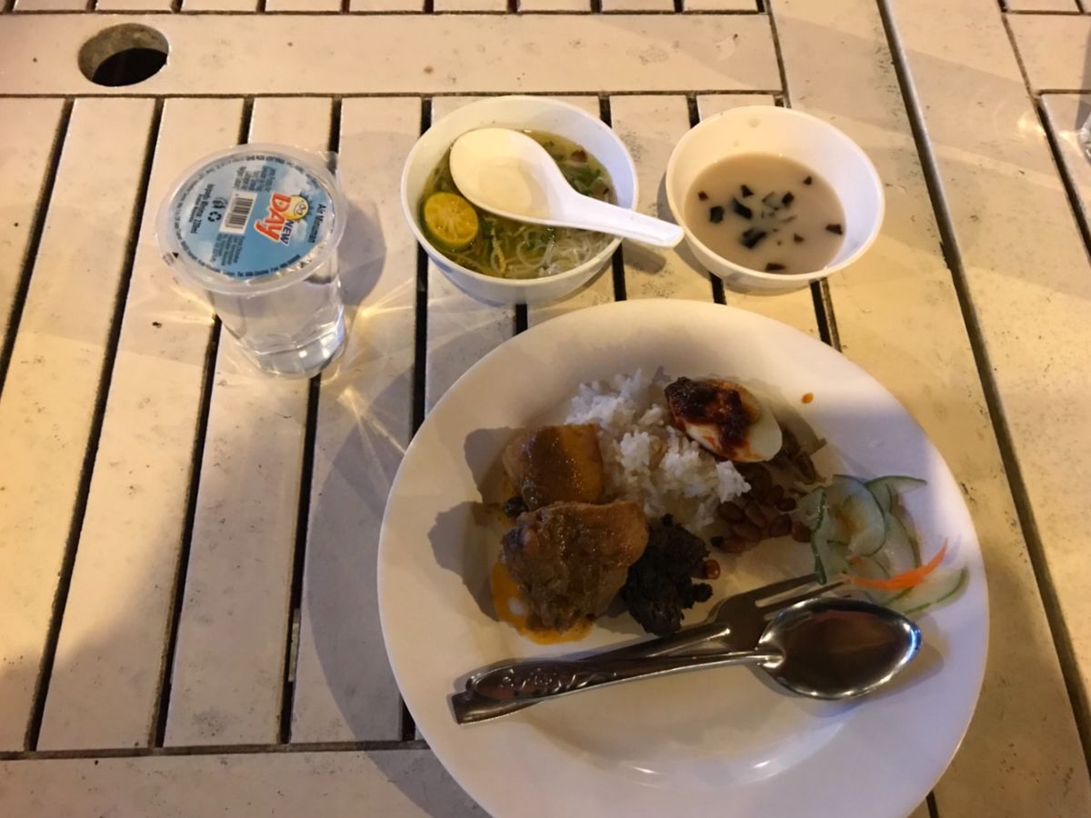 ホテルから13:15にピックアップしてもらって、少しバスで走ったところで軽食とトイレ休憩。ナシゴレンかミーゴレンを選べます。