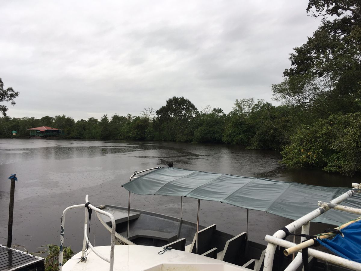 スコールがホテルを出発したころから始まり、ウエストン村についてもしばらく続き(2時間以上土砂降りの雨です)、船が出るか心配しましたが、ガイドさんの話しでは中止になる確率はほとんどないとのことでした。